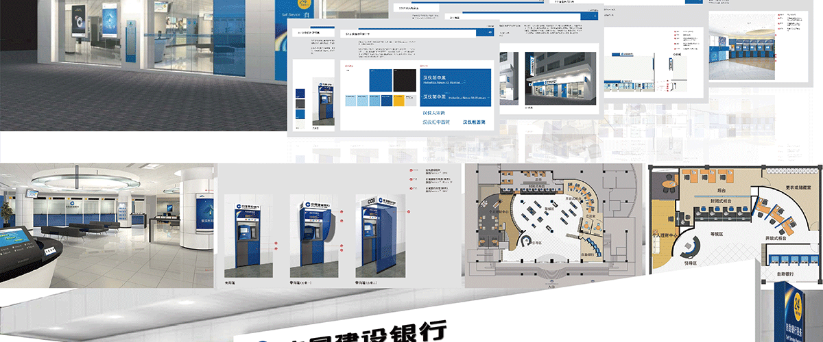 3.提出企業(yè)文化生態(tài)圈,設(shè)計完善更具建設(shè)銀行視覺語言以及品牌價值的環(huán)境空間、視覺傳播應(yīng)用系統(tǒng)