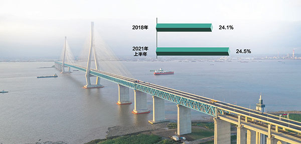 長三角三省一市地區(qū)經(jīng)濟(jì)總量占全國比重由2018年的24.1%上升到今年上半年的24.5%,對全國經(jīng)濟(jì)貢獻(xiàn)度進(jìn)一步提高;浦東新區(qū)高水平改革開放持續(xù)推進(jìn),統(tǒng)一大市場建設(shè)穩(wěn)步推進(jìn),長三角生態(tài)綠色一體化示范區(qū)建設(shè)碩果累累……