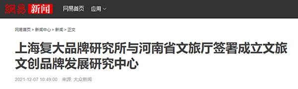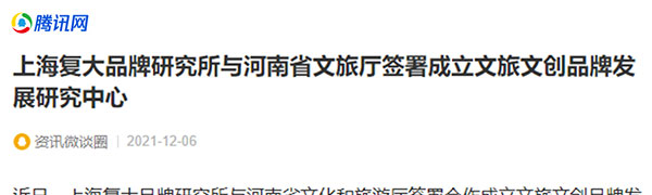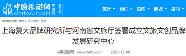 近日,上海復大品牌研究所與河南省文化和旅游廳簽署合作成立河南省文旅文創(chuàng)品牌發(fā)展研究中心,推進河南省全域旅游主題形象塑造和品牌建設。人民網(wǎng)、光明網(wǎng)、中國旅游網(wǎng)等權威媒體關注報道。