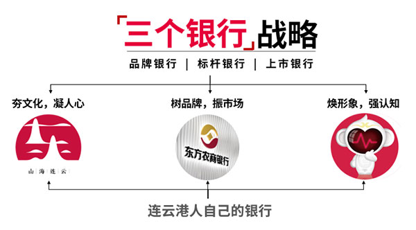 東方農(nóng)商銀行品牌必須建立起連云港本地人信任的現(xiàn)代銀行的品牌心智,讓客戶感受到親和、活力、時尚的現(xiàn)代農(nóng)商銀行,助力連云港新型智慧城市和踐行城鄉(xiāng)普惠金融,承接?xùn)|方農(nóng)商銀行“三個銀行”戰(zhàn)略目標(biāo)規(guī)劃,讓普惠金融成為連云港新型智慧城市金融名片。