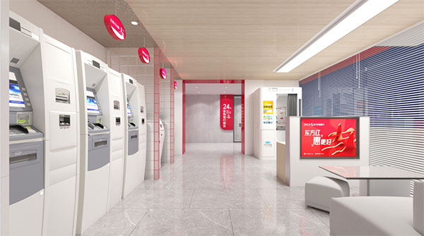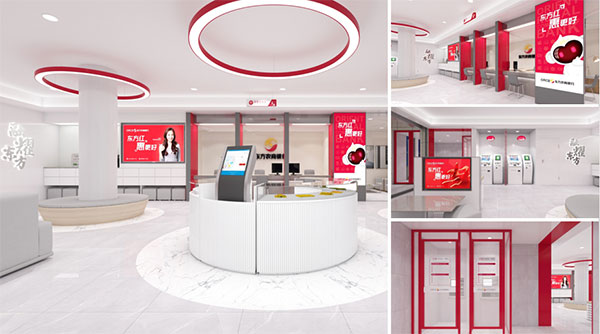 除此之外,項(xiàng)目組在為東方農(nóng)商銀行進(jìn)行營業(yè)空間設(shè)計(jì)時,還在設(shè)計(jì)中深度植入品牌色彩與IP形象,能夠給客戶留下深刻的品牌印象的同時,也有效區(qū)別于其他金融機(jī)構(gòu)。