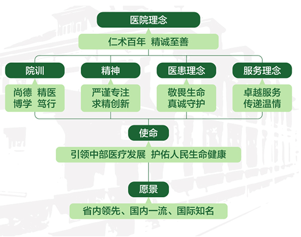 武漢市中心醫(yī)院有長(zhǎng)期沿用的文化理念體系,較為完整和豐富,但外部的文化感知及傳播。項(xiàng)目組在現(xiàn)有的文化體系基礎(chǔ)上,延伸了更利于外部傳播及感知的文化內(nèi)涵與呈現(xiàn)。