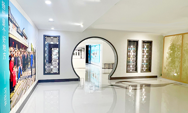 在不破壞建筑結(jié)構(gòu)的基礎(chǔ)上,運(yùn)用園林的借景手法和元素譬如八角窗、屏風(fēng)、拱門等,起到視線分割的作用,盡可能的提升空間的層次感,既可以在有限的面積內(nèi)展示更多內(nèi)容,又以較小的施工量帶來了高質(zhì)量的沉浸式閱覽體驗(yàn)